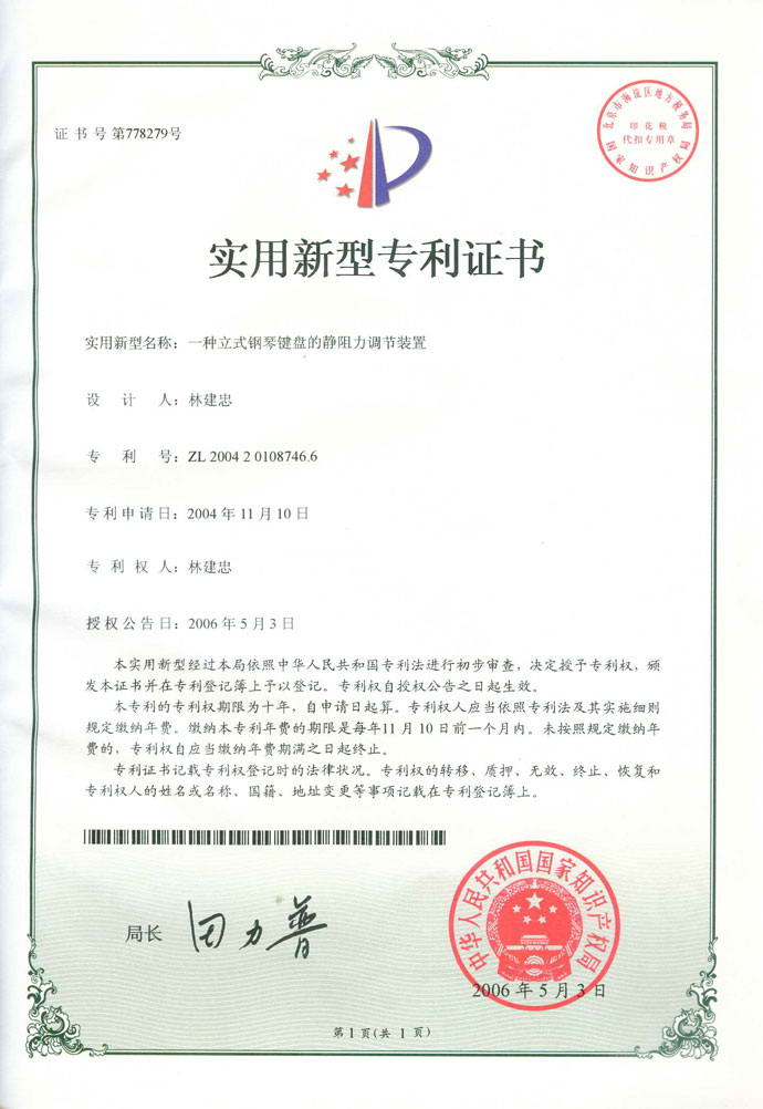 该装置可以有效地调整键盘的静阻力的强弱,能够适应于不同人群弹奏手感的特殊要求。