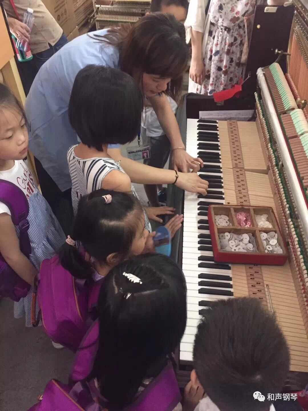 在“纠错大师满分挑战赛汇演和颁奖”走进“哈曼尼”的活动中,积木番茄机构的师生们在公司党员、入党积极分子志愿者的引导下,先后参观了恒温恒湿生产车间及音板静置养生房等力求产品质量恒定、品质高端,颇具和声生产特色、与众不同的生产环境。通过志愿者们的耐心讲解,小学员们不仅学习了钢琴的基本构造常识、钢琴生产的各道工序流程和工艺特点,还兴致勃勃、纷纷上阵动手当了回小工匠――过回调试钢琴的瘾。