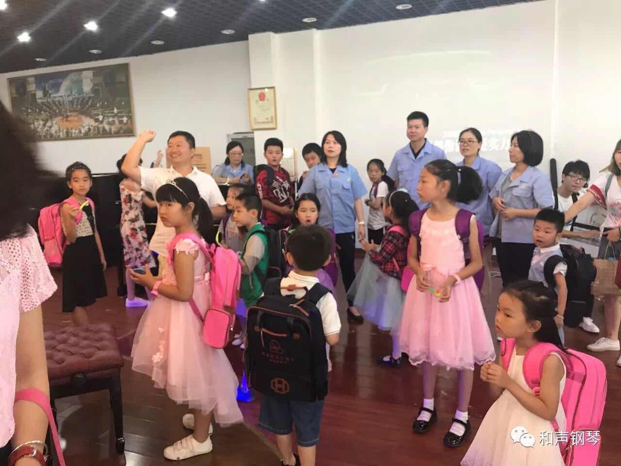在公司陈列室,小学员们聚精会神地在限量版“哈曼尼”HG-153GD8 24K真金装饰的三角钢琴上淋漓尽致地汇演各自的经典曲目,将活动推向一个又一个高潮。