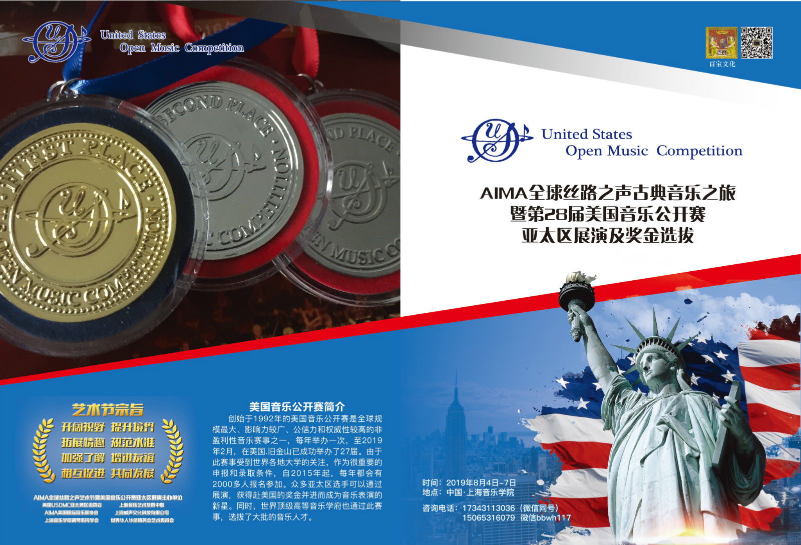 2019年8月4日-7日,AIMA全球丝路之声古典音乐之旅暨第28届美国音乐公开赛亚太区展演及奖金选拔在上海音乐学院隆重举行。