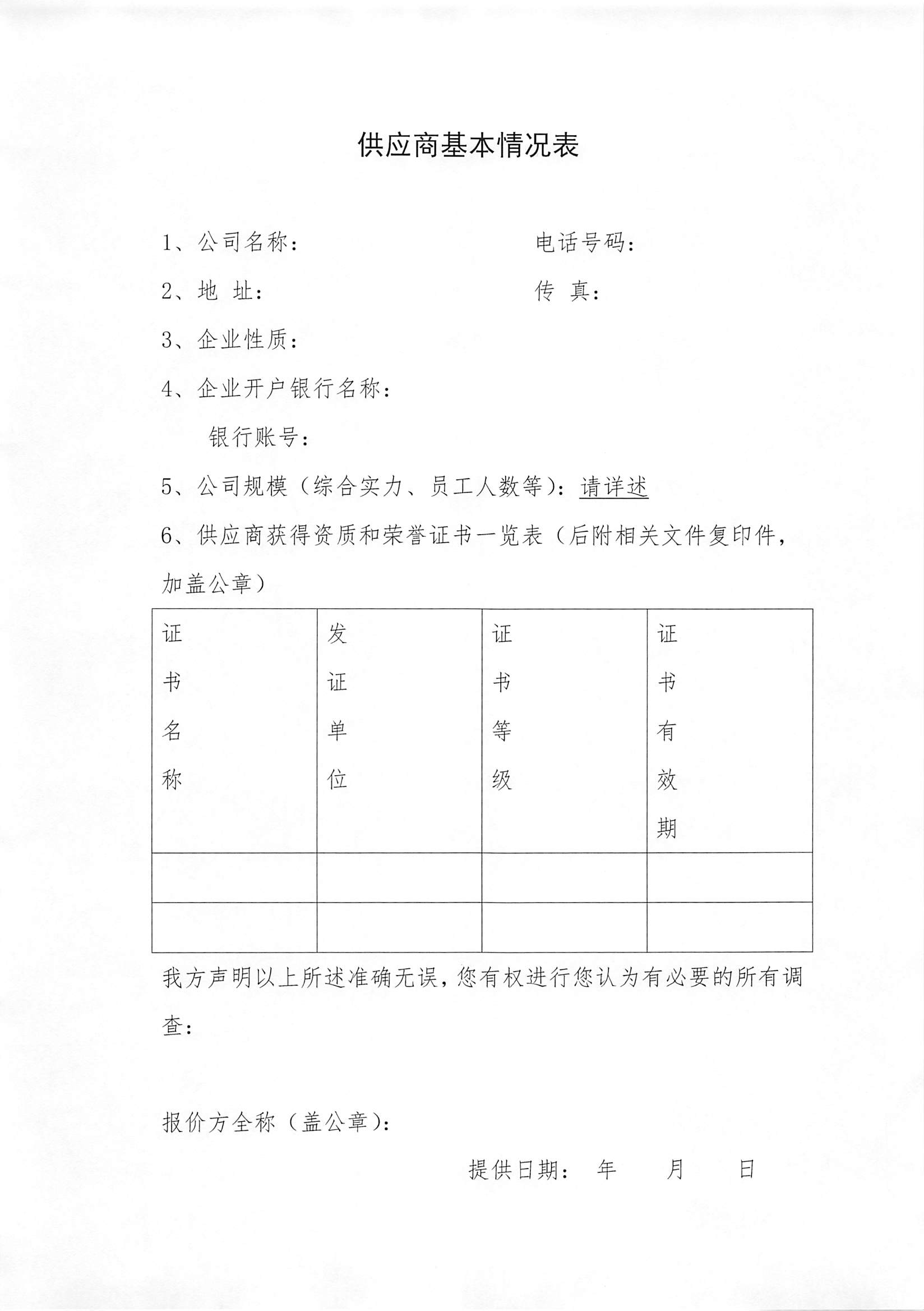 2、提供《报价函》、《供应商基本情况表》、《二次报价函》(若需要)。【必须提交】